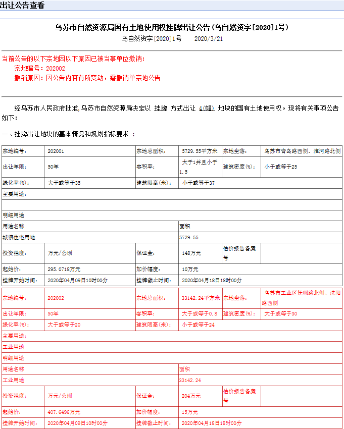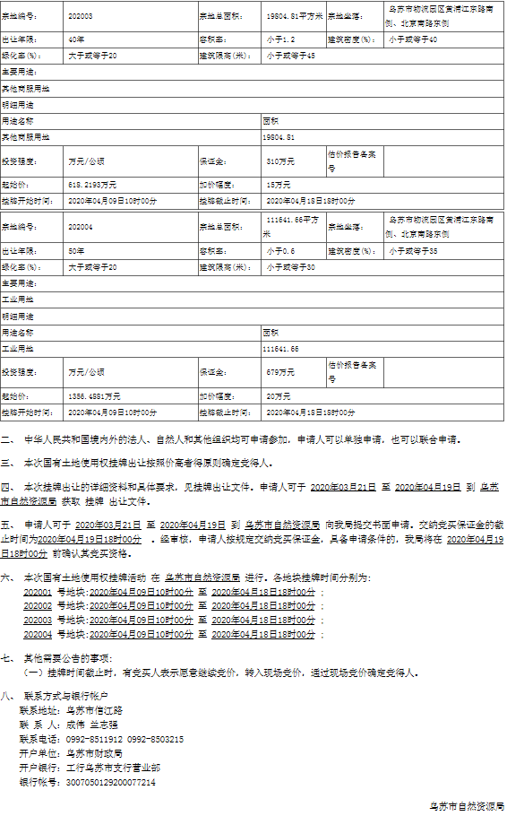 烏蘇市自然資源局國有土地使用權(quán)掛牌出讓公告1號