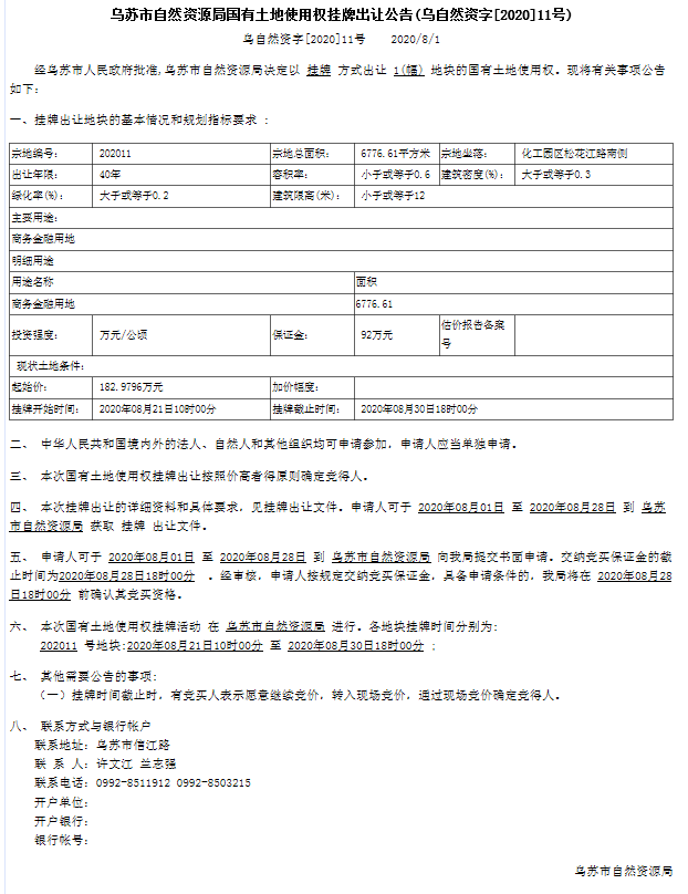 >信息公開(kāi)>信息公開(kāi)專欄>塔城地區(qū)行署機(jī)構(gòu)>自然資源局>公開(kāi)事項(xiàng)>國(guó)有土地使用>詳細(xì)內(nèi)容