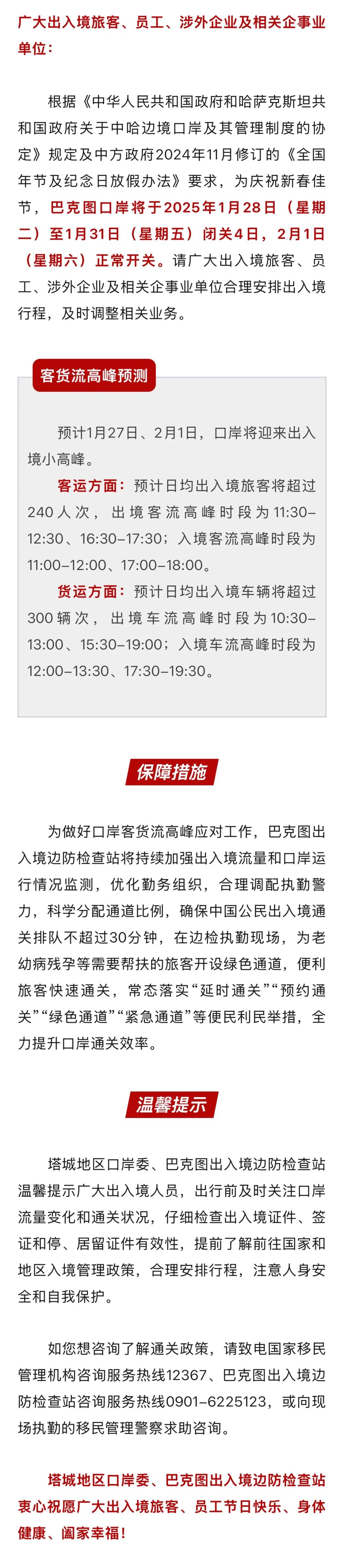 巴克圖口岸春節(jié)閉關(guān)公告暨“兩公布一提示”
