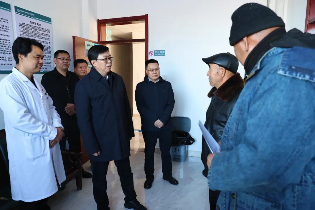 12月2日,地委書記支現(xiàn)偉走進(jìn)額敏縣瑪熱勒蘇鎮(zhèn)衛(wèi)生院,與患者親切交流。塔城地區(qū)融媒體中心記者蘇珊琳攝