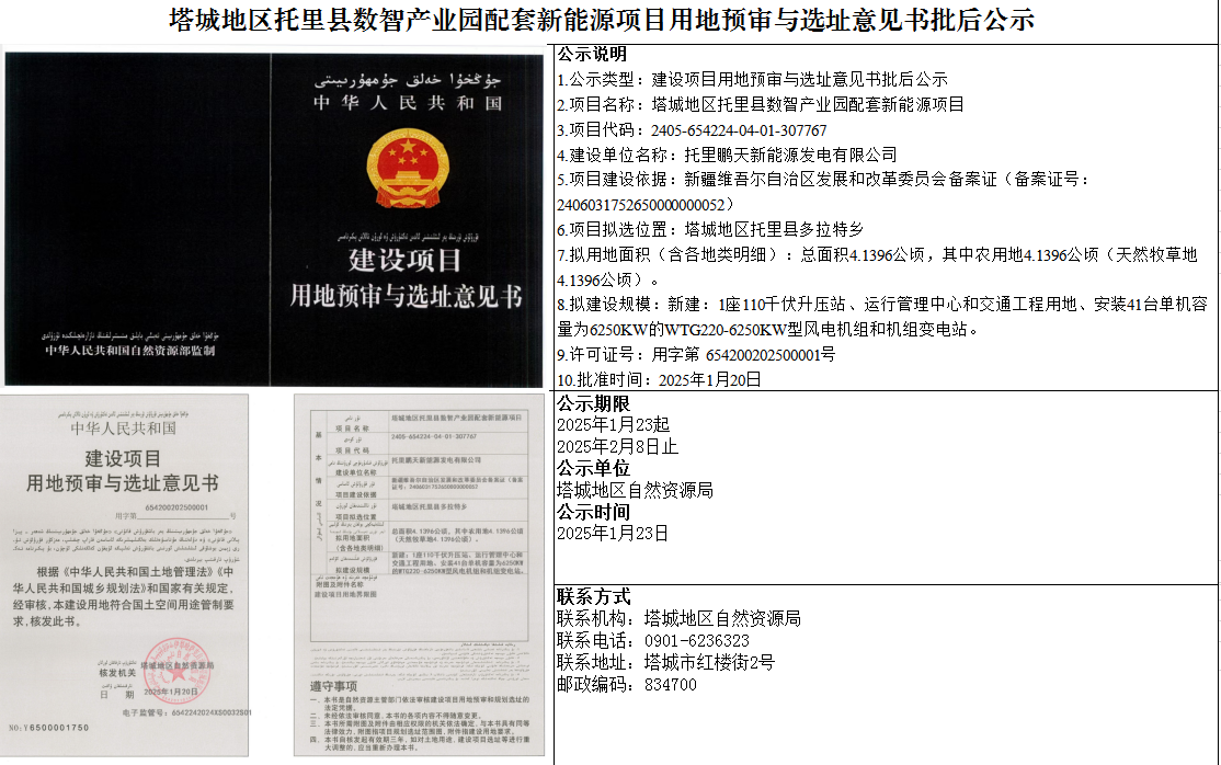 塔城地區(qū)托里縣數(shù)智產(chǎn)業(yè)園配套新能源項(xiàng)目1號(hào)證